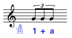 An eighth note triplet is a group of three evenly spaced notes played within one beat. Eighth note triplets are indicated by three eighth notes grouped together by a bracket (or a curved line) and the numeral 3. The eighth note triplets are played with one third of a beat each. Triplets are easy to understand once you have heard them played.